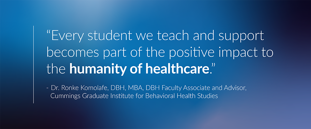 Cummings Graduate Institute for Behavioral Health Studies (CGI) is proud to announce that Dr. Ronke Komolafe, DBH, MBA, Doctor of Behavioral Health (DBH) advisor and faculty member, has been selected…